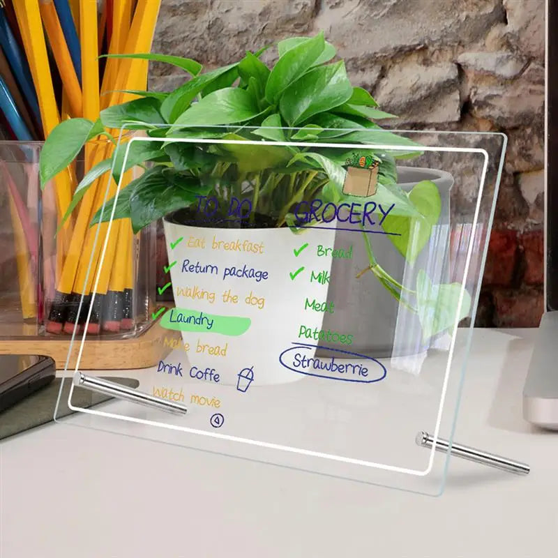 This Acrylic Dry Erase Board has a wide range of uses, which is suitable for furniture decoration or a message board at home. You can leave a message on it when you have something to help other members of the family get information. The desktop dry erase board can also be used as a gift for a friend of the owner. What are you still hesitating about, hurry up and buy one!